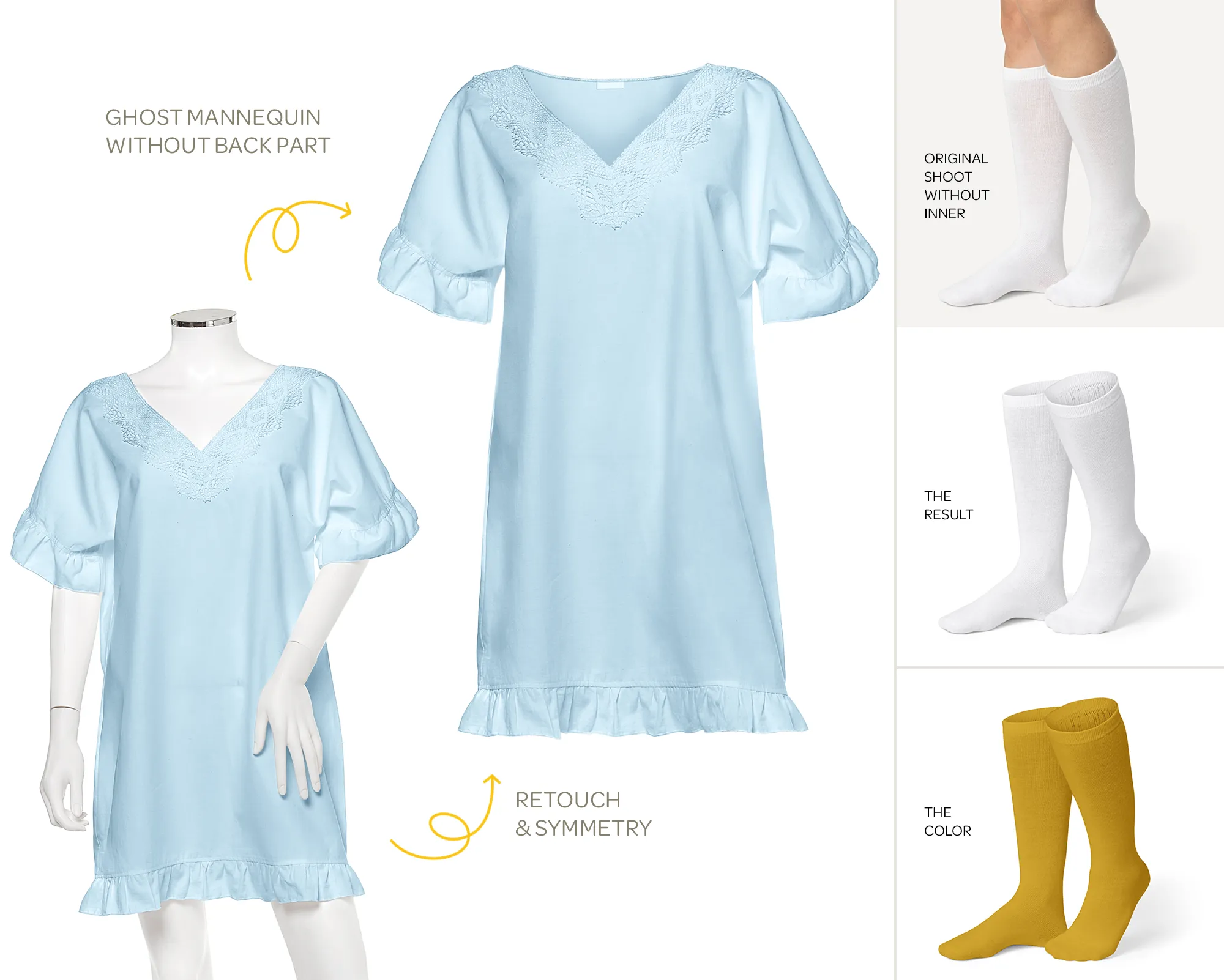 - Symmetry and alignment adjustments: Perfect symmetry turns an ordinary product image into a professional showcase. Professional ghost mannequin services balance right and left sides, align front-to-back images, and create symmetry from the center.